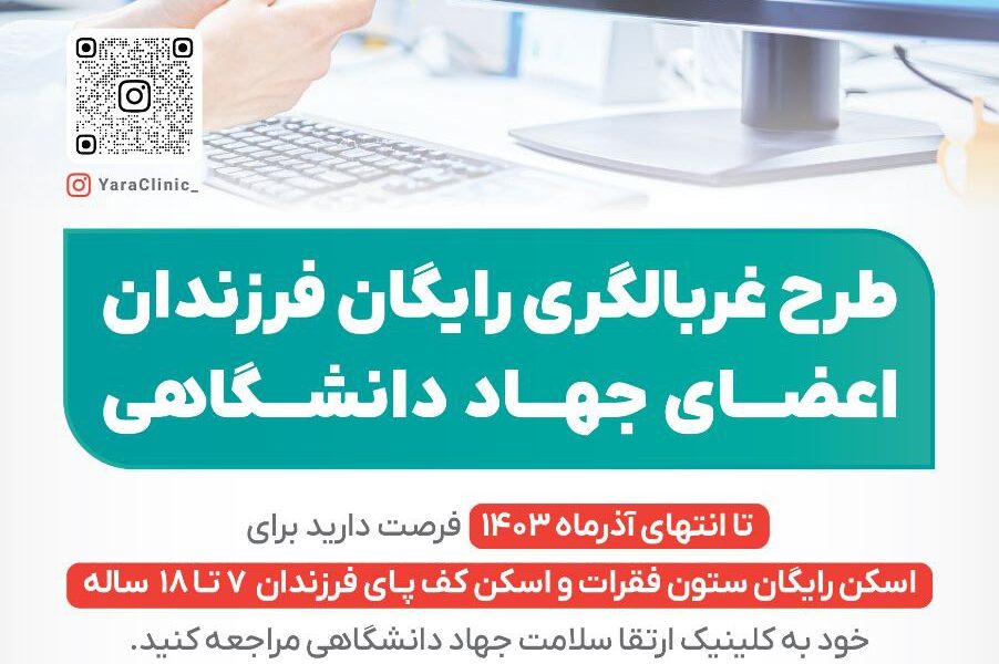 غربالگری رایگان اختلالات قامتی و کف پای فرزندان اعضای جهاد دانشگاهی